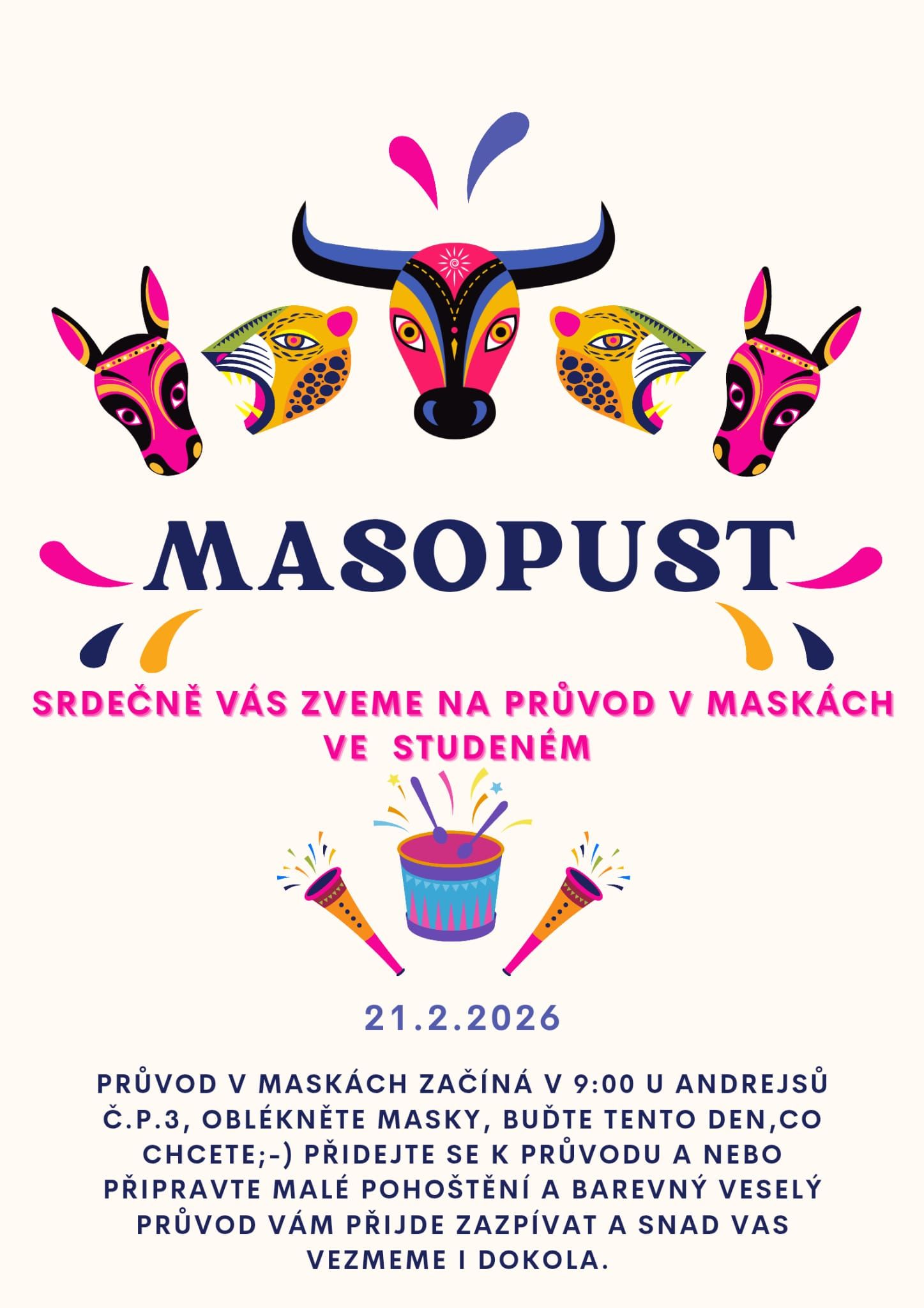 MASOPUST – průvod v maskách ve Studeném 21.2.2026